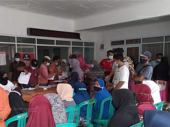 Pembayaran BST oleh Petugas Pos Kecamatan Kertasemaya dilakukan dengan tetap menerapkan protokol kesehatan. Masyarakat tetap diwajibkan memakai masker dan mencuci tangan dengan sabun.