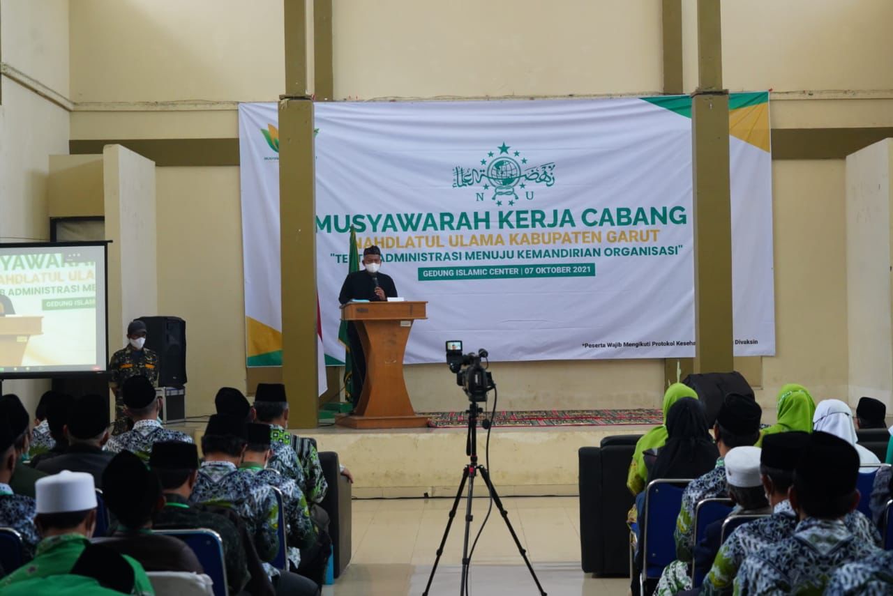 METROPOST1.COM, Garut – Sekretaris Daerah (Sekda) Kabupaten Garut, Nurdin Yana membuka Acara Musyawarah Kerja Pengurus Cabang (PC) Nahdatul Ulama (NU) Kabupaten Garut yang dilaksanakan di Gedung Islamic Centre, Kecamatan Garut Kota, Kabupaten Garut, Kamis (7/10/2021).