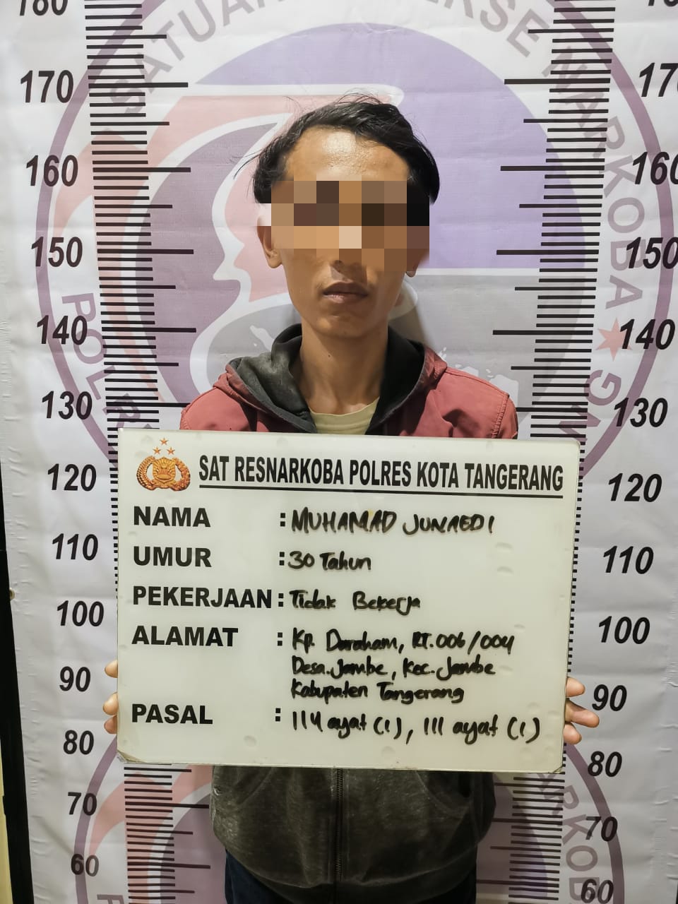 METROPOST1.COM, Tangerang — Seorang pria berinisial MJ (30) ditangkap Satuan Reserse Narkoba Polresta Tangerang Polda Banten, Jumat (24/9/2021). MJ ditangkap di rumahnya di Kampung Daraham, Desa Jambe, Kecamatan Jambe, Kabupaten Tangerang sekira jam 2 dini hari.
