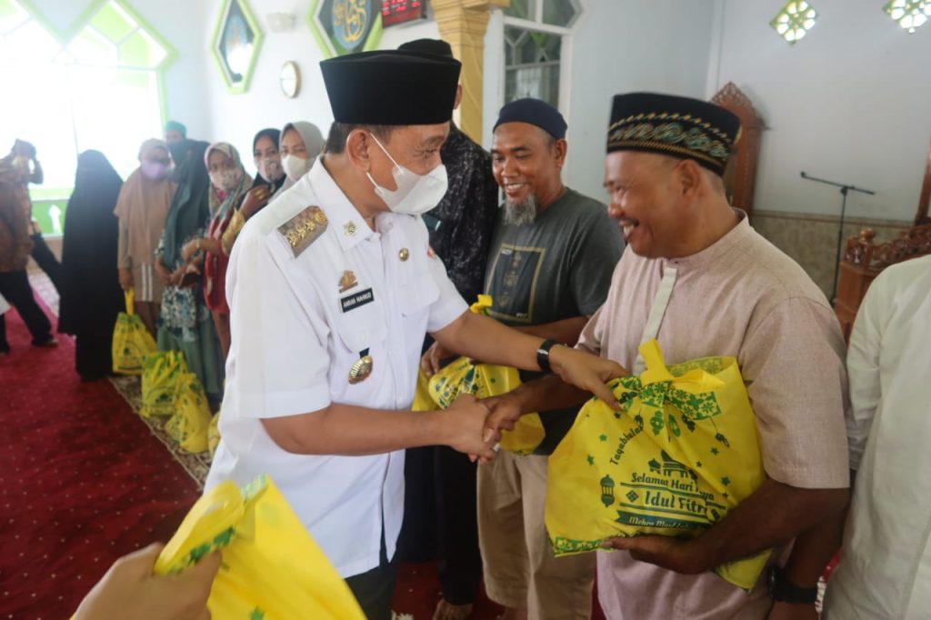 Penyerahan bantuan ini dilaksanakan usai salat Zuhur di Masjid Babussalam, Kelurahan Bulupabbulu, yang merupakan titik kedua kunjungan safari Ramadan Pemerintah Kabupaten (Pemkab) Wajo di Kecamatan Tempe, Rabu (20/4/2022).