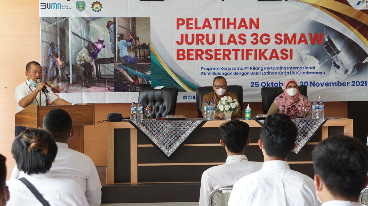 Untuk terus meningkatkan keterampilan para tenaga kerja, Pertamina melalui PT Kilang Pertamina Internasional (KPI) Unit Balongan terus melaksanakan upskill para pemuda yang tinggal di sekitar Kilang Balongan untuk memiliki keahlian dan keterampilan, diantaranya dengan mengadakan Pelatihan Juru las 3G SMAW (Shield Metal Arc Welding) Bersertifikasi mulai 25 Oktober-20 November 2021 bekerjasama dengan Balai Latihan Kerja (BLK) Dinas Tenaga Kerja Kabupaten Indramayu.