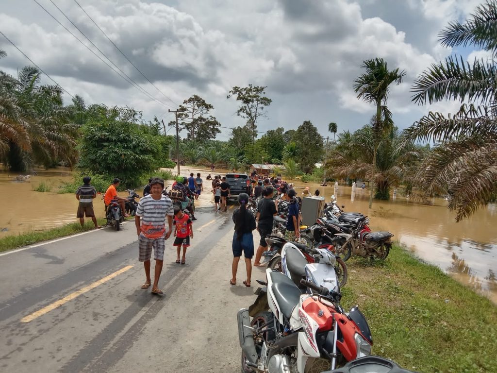 Hairan, selaku wakil Bupati Tanjung Jabung barat meninjau Lokasi banjir, “diperkirakan 10 Rumah warga RT 08 yang terendam oleh banjir, banjir juga merendam jalan Lintas Tegah Merlung Lubuk Kambing. Waspadalah terhadap banjir” kata Hairan.