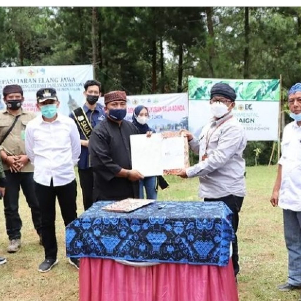 Selain pelepasliaran elang jawa, Wabup Lebak bersama Kepala Balai TNGHS Ahmad Munawir, Para Kepala OPD Pemkab Lebak, Muspika Kec Sobang dan Lebak Gedong, Paguyuban Saija Adinda melakukan penanaman secara simbolis 1300 bibit pohon dan dilaksanakan penandatanganan perjanjian kerjasama kemitraan konservasi antara Balai TNGHS dengan Cihambali Lestari. (N@nk-Rs)